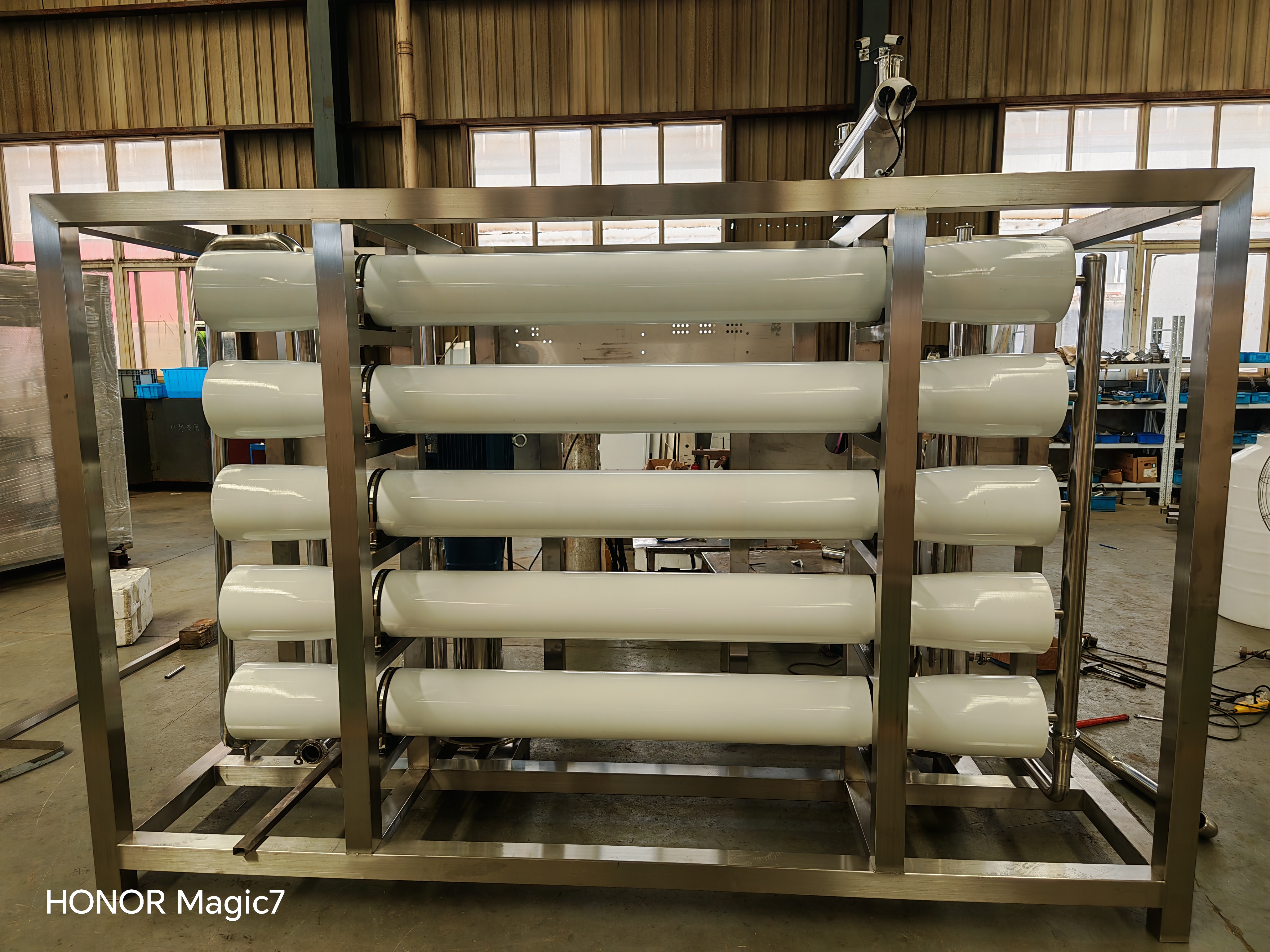 反滲透系統(tǒng)主要設(shè)備有石英砂過濾器,活性炭過濾器,鈉離子交換器,RO(反滲透),紫外線消毒器,精密過濾器,臭氧發(fā)生器,水箱等。處理能力為0.5-50噸/小時(shí)。它可以有效地去除泥濘的有機(jī)物,鐵,錳和氧化物,過濾懸浮物,膠體,微生物殘留的氧和水中的一些重金屬離子,降低水的硬度,使各種規(guī)格的水質(zhì)完全符合國家淡水標(biāo)準(zhǔn)的淡水。